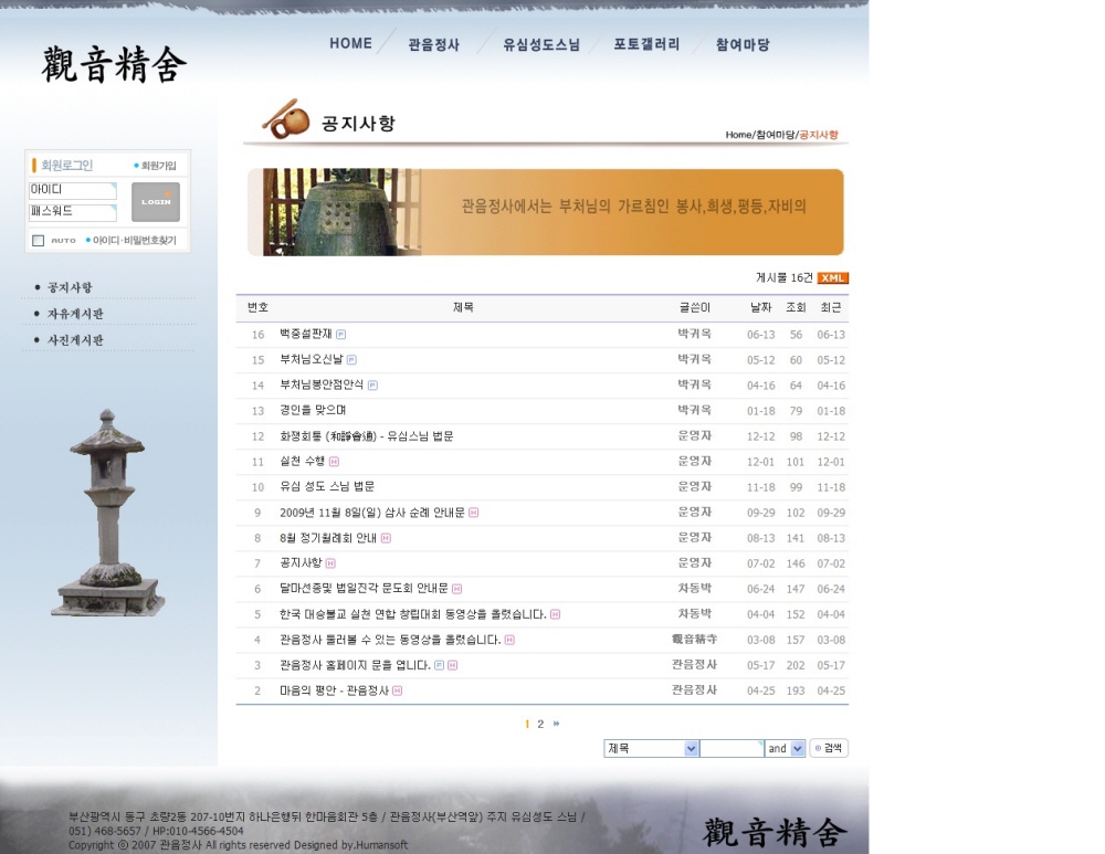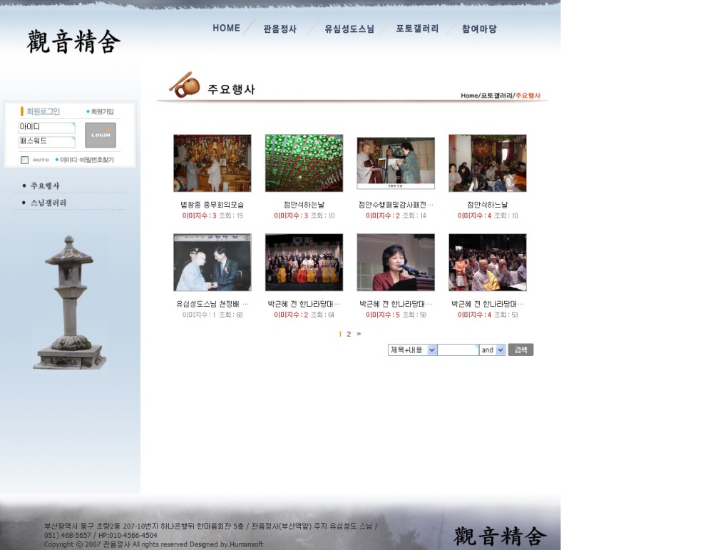 관음정사 홈페이지를 신규 제작하였습니다