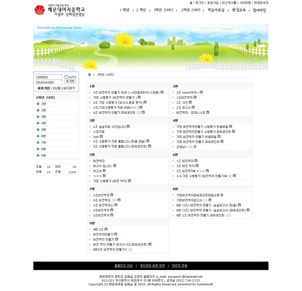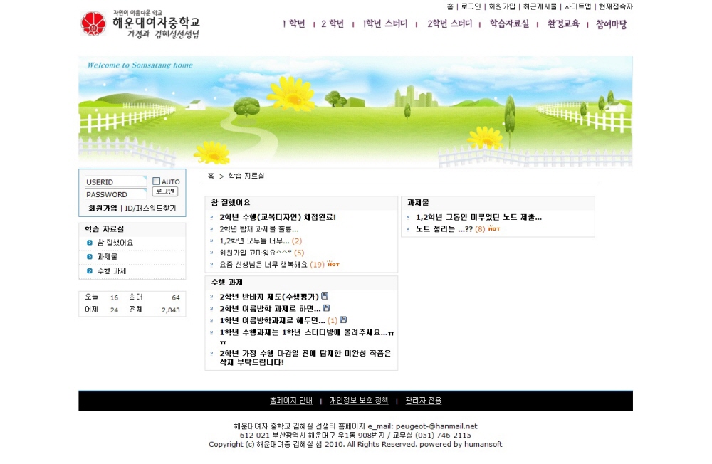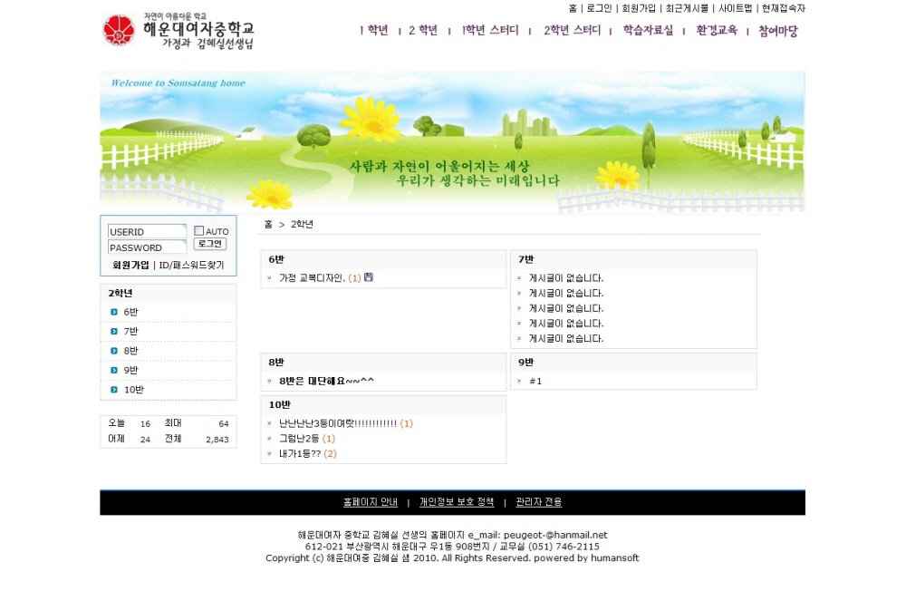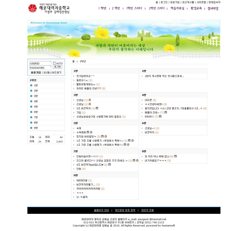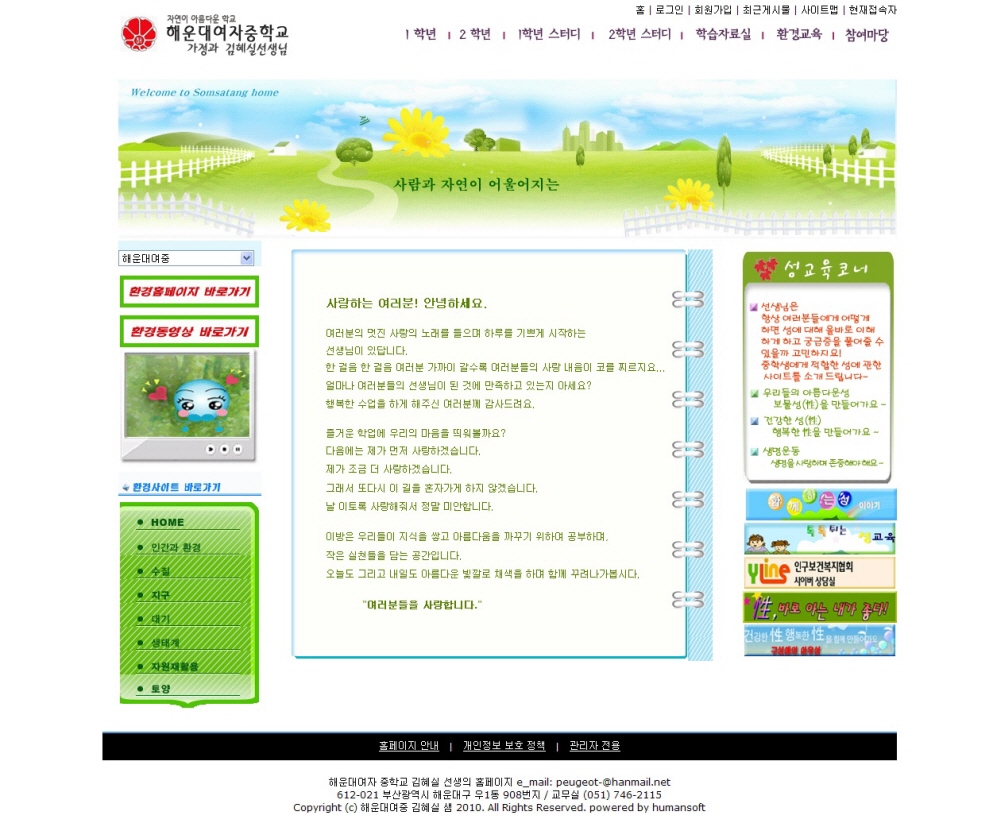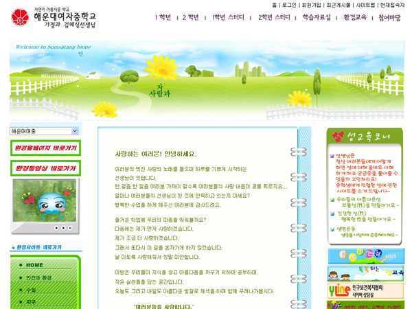 해운대 여중 환경 홈페이지를 개편하였습니다