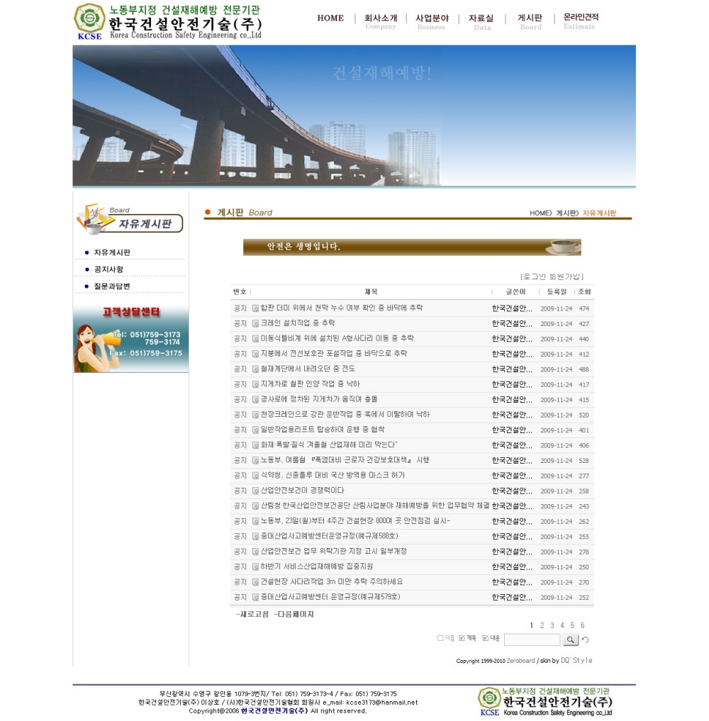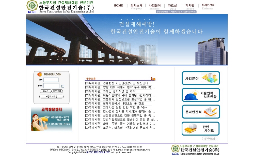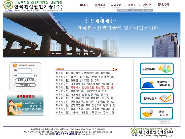 한국건설안전기술(주) 홈페이지 개설하였습니다