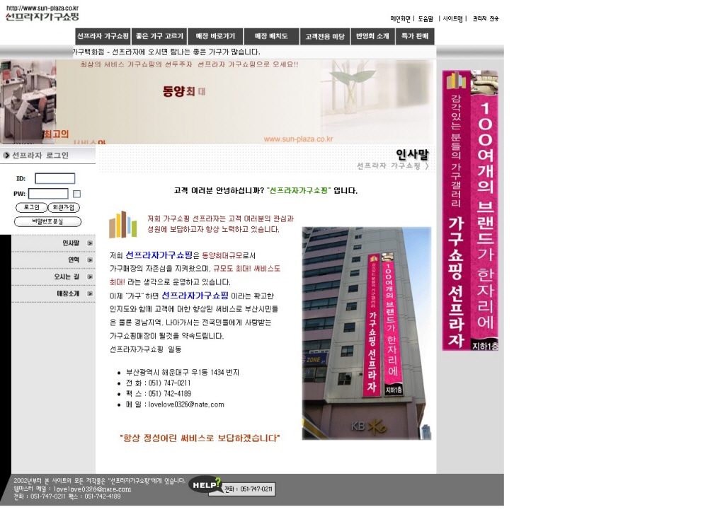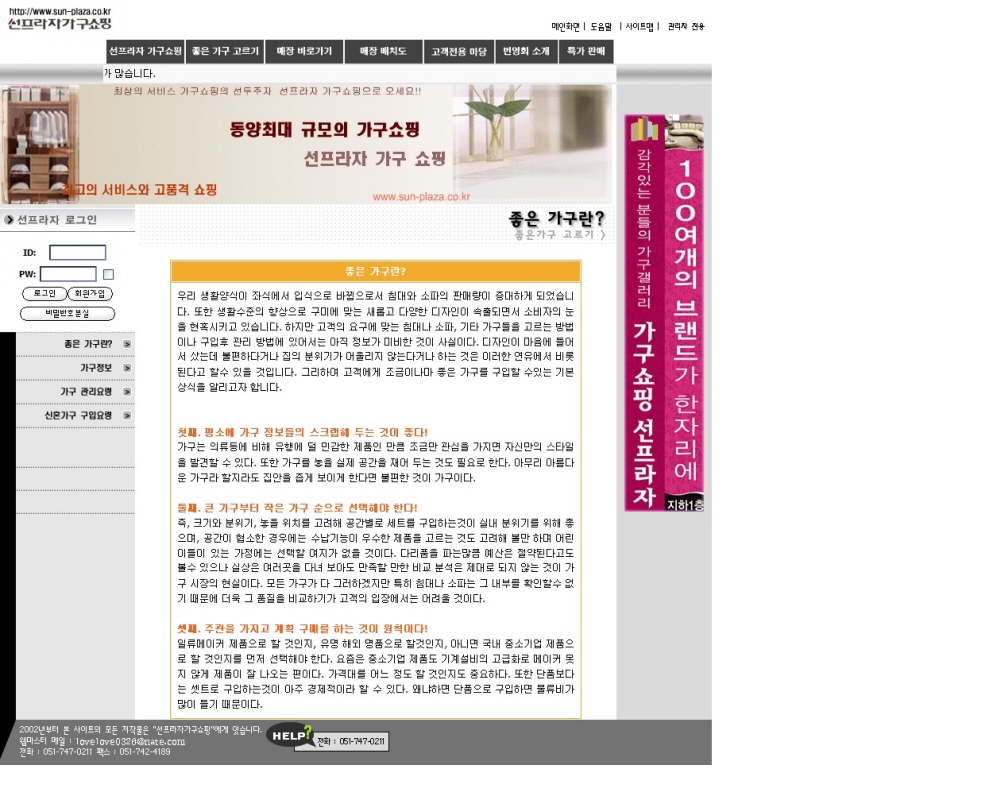 선프라자 가구쇼핑 - 가구점 50개가 모여있는 집단 상가 홈페이지입니다